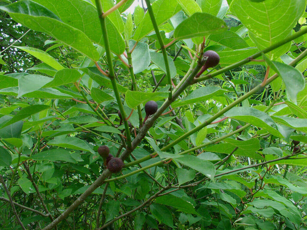 このイヌビワの実。今はまだ完全に熟しておらず、実もまだ固いですが、熟すると黒くなり、はじけるように割れてそこからとても甘い果汁が出て来ます。