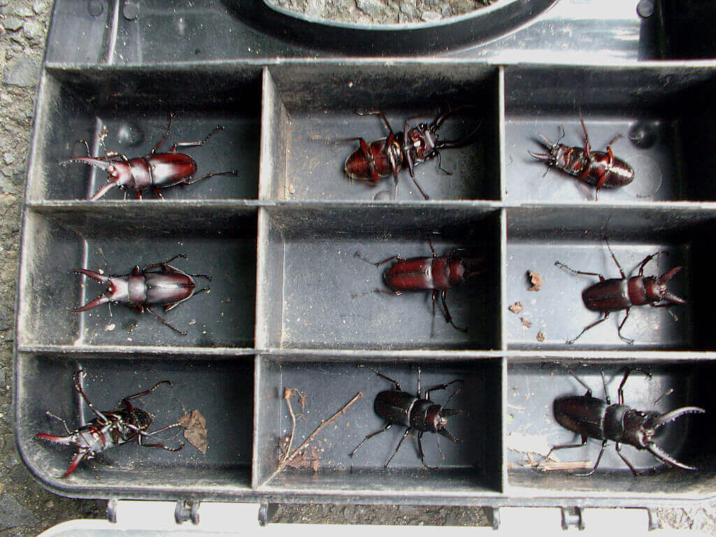 面白いように落ちて来るノコギリクワガタ達、