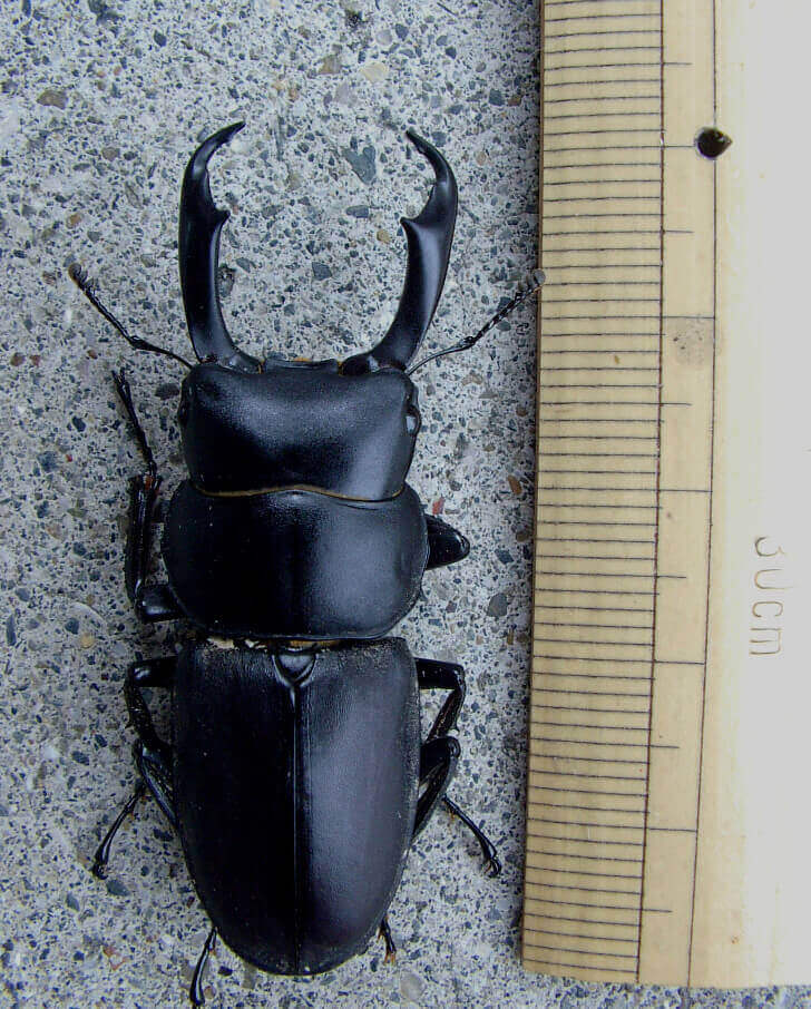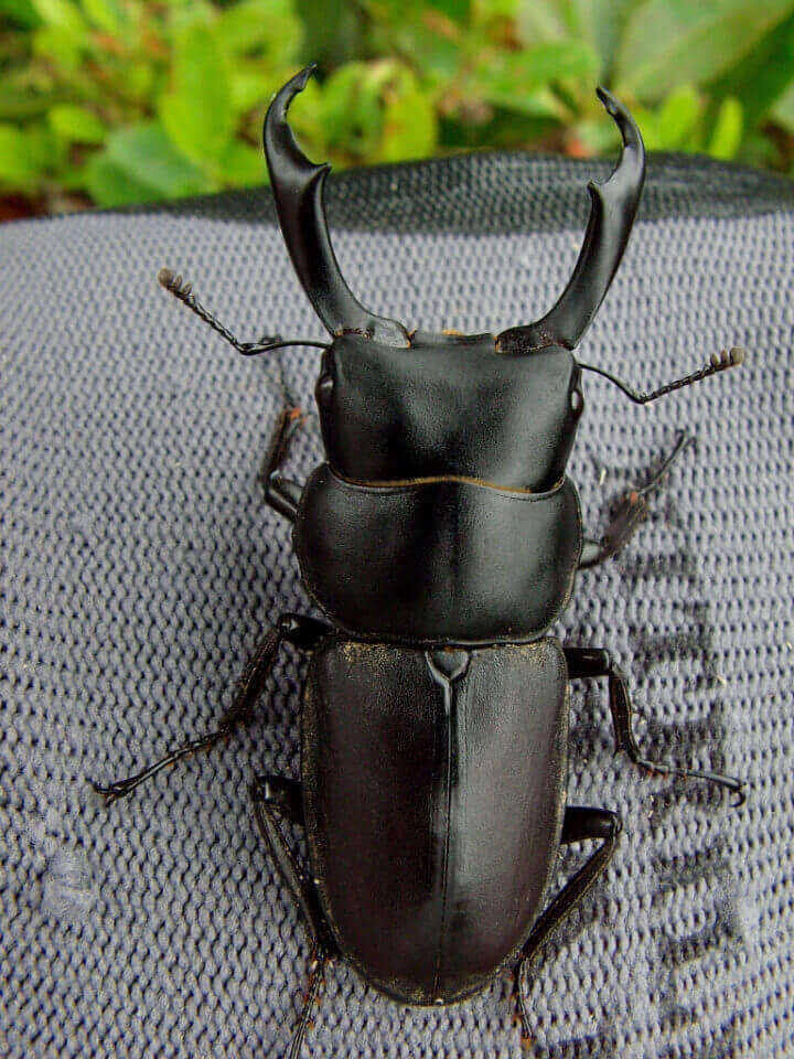 小さかったのでコクワガタかと思いましたが、ヒラタクワガタでした。