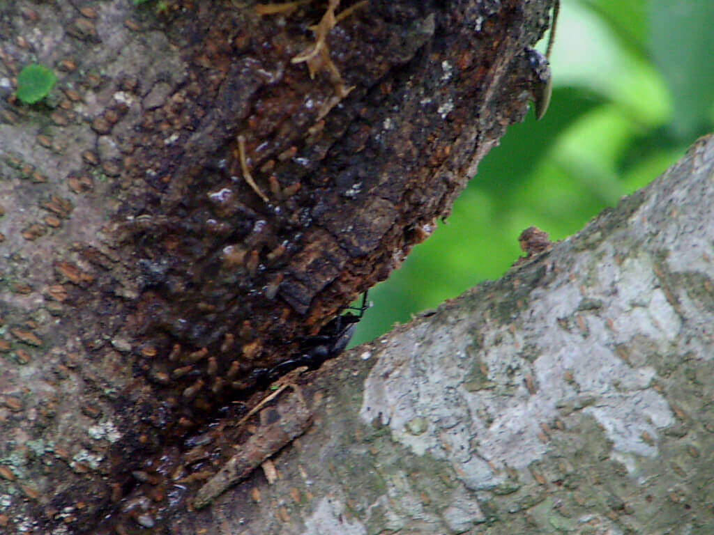 ハルニレの小さなウロ(穴)から顔を出すコクワガタ♂