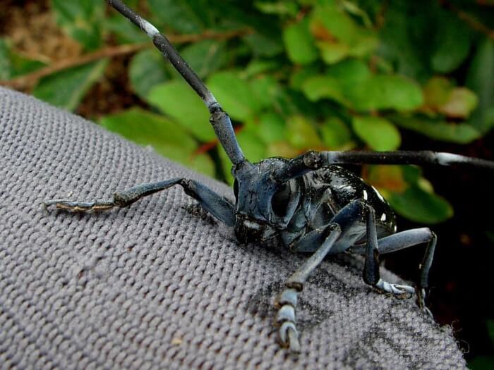 小さい頃、家の庭に生えてあったミカンの木で良く見かけました。とてもキレイで格好の良いカミキリムシです。