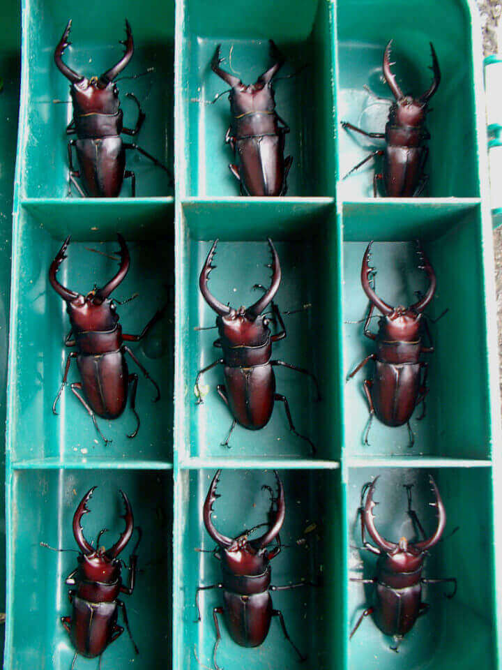 前回に同様に面白いようにノコギリクワガタが落ちて来ます!