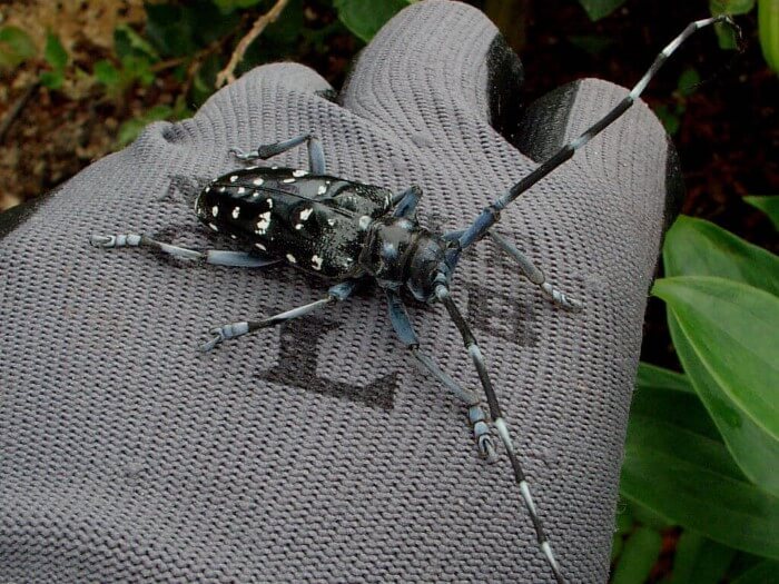 小さい頃、家の庭に生えてあったミカンの木で良く見かけました。とてもキレイで格好の良いカミキリムシです。