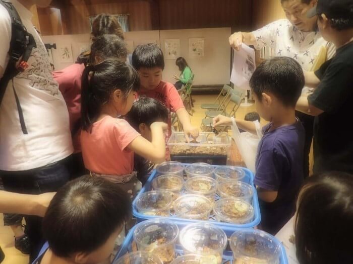 教室終了後には群馬で採集したクワガタ達とのふれあいコーナーを行いました。