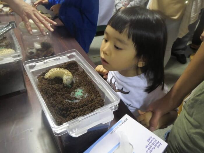 ヘラクレスオオカブトとのふれあいコーナーも人気です。