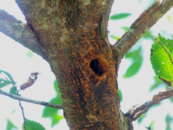 高い所にあり手が届かず、またウロもかなり狭いので種類&性別などを確認するのは断念。