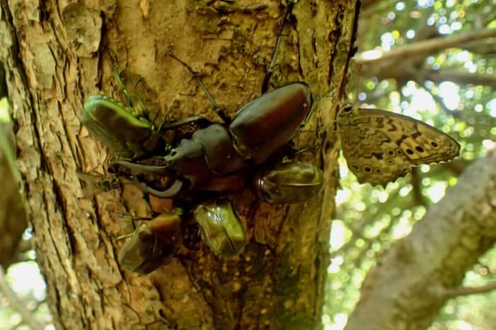 ※ 採集はマナーが大事です。採集する場所が私有地の場合は、無断では入らないようにしましょう。必ず持ち主さんに断りを入れるのは必須です。あと、虫が木の穴の中に入って採れないからと言って、木を切ったり、傷つけたりするのも好ましいとは言えません、自然にやさしく、モラルを守って採集を楽しみましょう。(^^)
