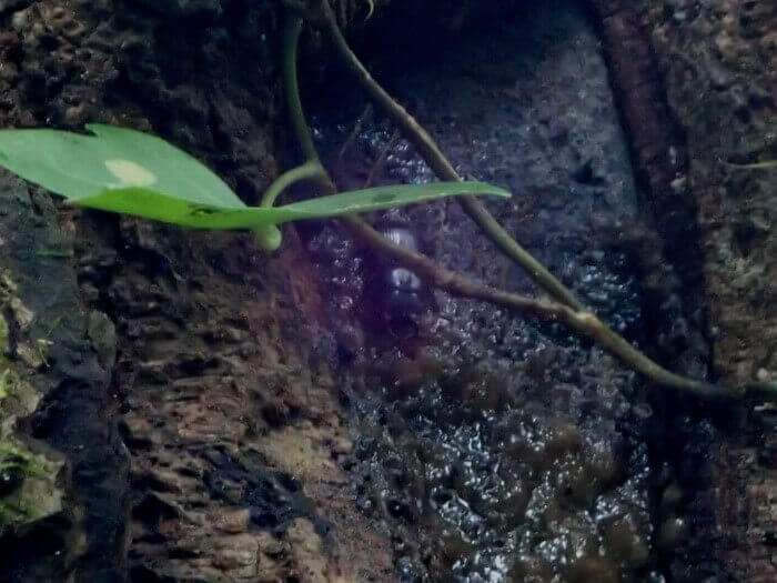 少し太めのハルニレの樹液だまりに小さい何かが見えました。