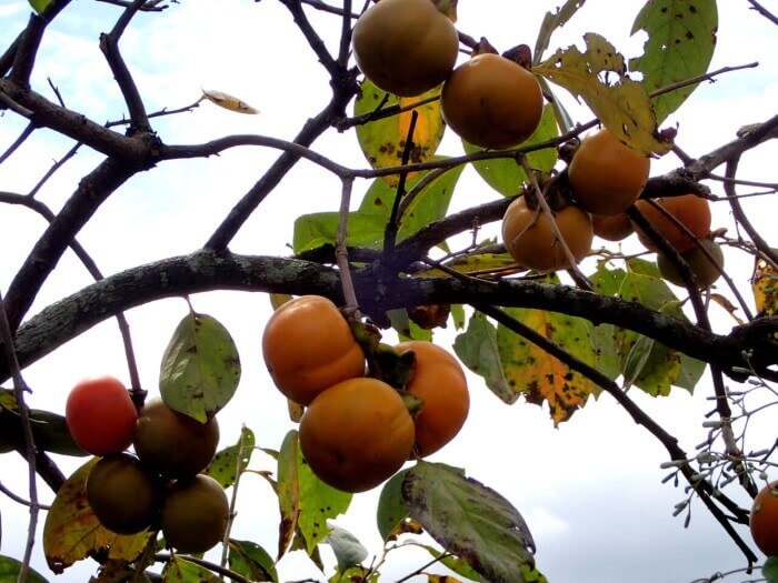 秋の風物詩の一つ、柿の実がたわわになり、熟しています。