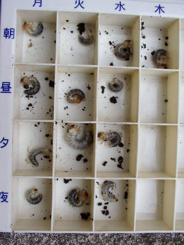 ちょっと画像が見えにくいですが、3頭の幼虫が確認出来ます。