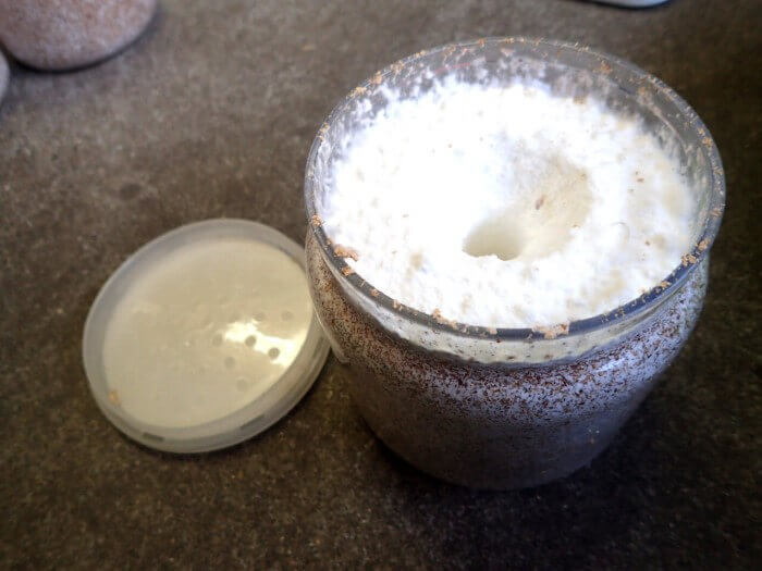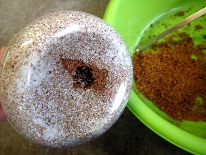 交換前の(先ほどまで幼虫がいた)菌糸ビンより、その幼虫が出していた糞を取り出します。