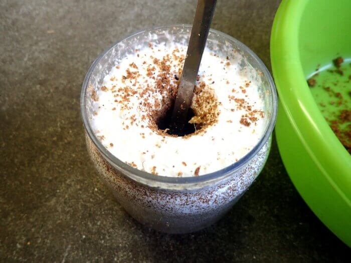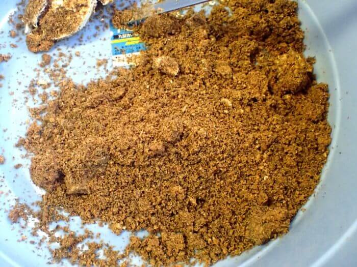 交換前の(先ほどまで幼虫がいた)菌糸ビンより、その幼虫が出していた糞を取り出します。