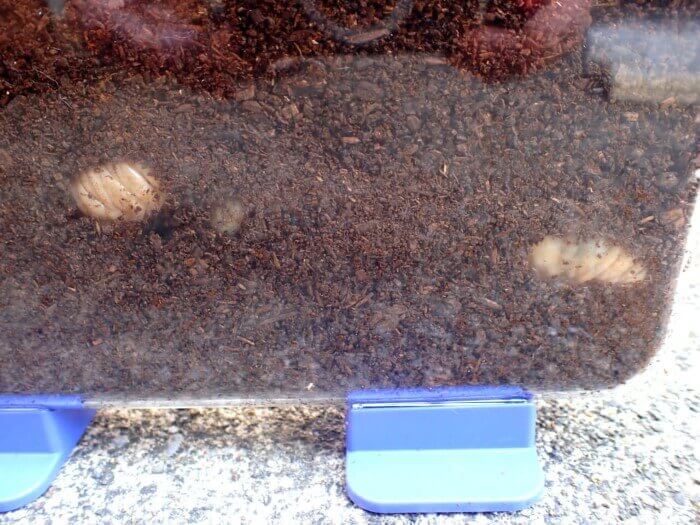 奥行きが狭い作りの為、この時点でも幼虫の姿を外側から確認することが出来ます。