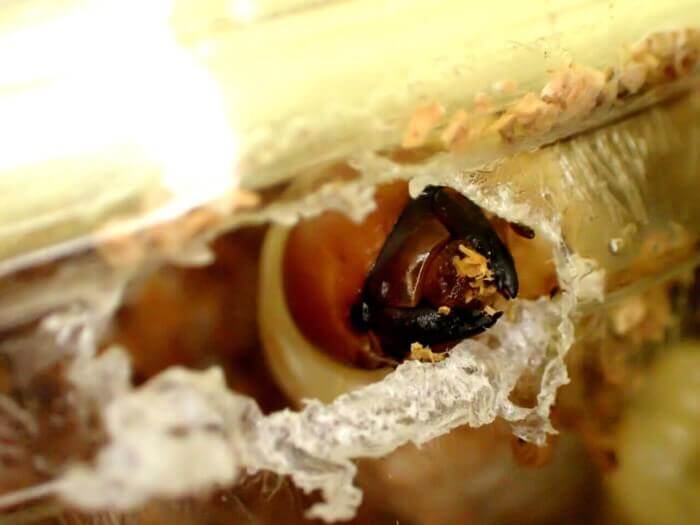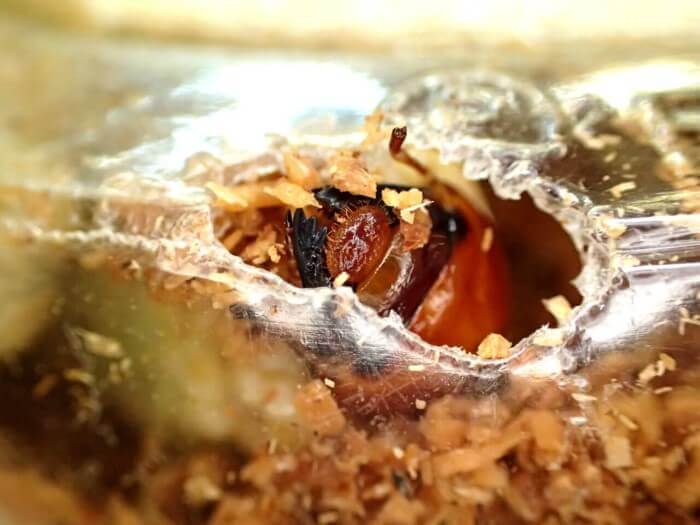 先日、菌糸カップに入れ替えたばかりのヒラタクワガタの幼虫。