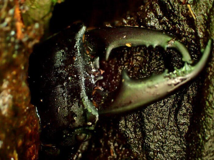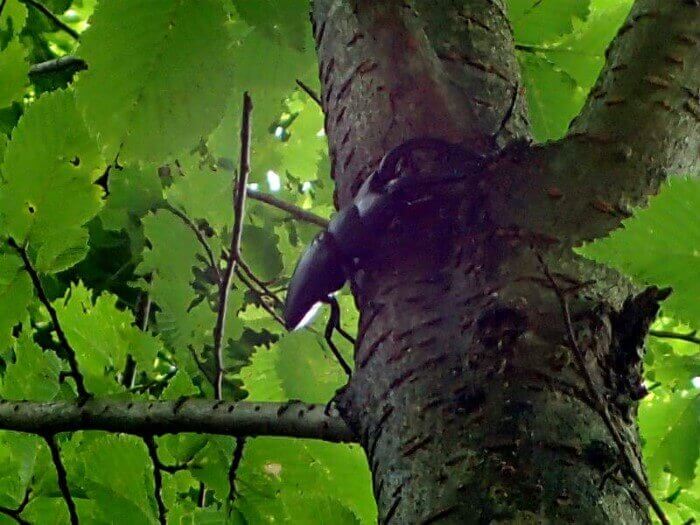 ハルニレのウロでヒラタクワガタを発見!