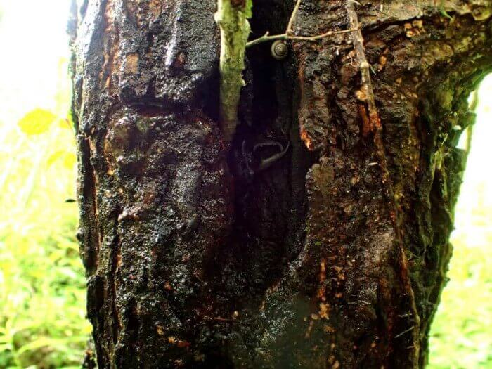 この木の上方に樹液が出ている場所があります。