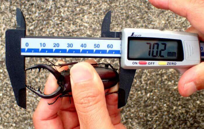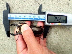 本来私は一人で採集から飼育、撮影まで行っている為、ノギスを持ったままでの撮影が困難ですが、この日は友人のN氏に手伝ってもらいキレイに撮影。