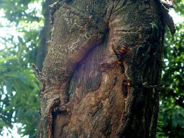 上にいるスズメバチを刺激しないようにそーっとウロから取り出したのは、
