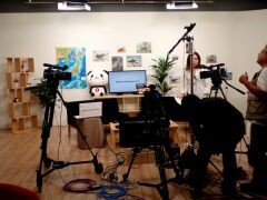 撮影は東京・二子玉川にある楽天本社ビル内。