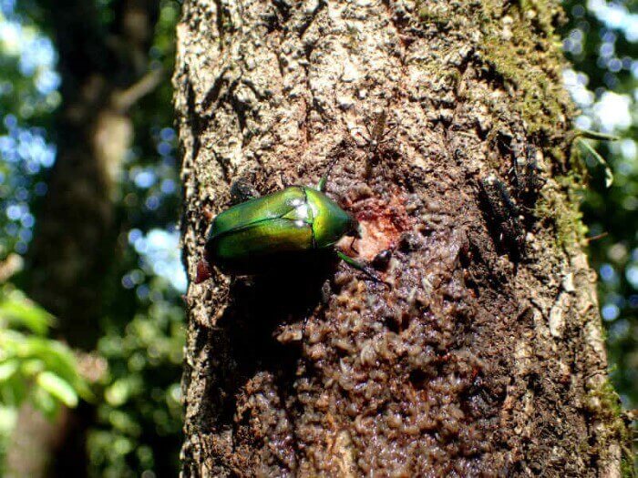 クヌギの木にカナブンを発見。