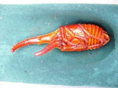 前蛹の場合、完全に前蛹状態になると、幼虫の頭(アゴ)と手が完全に固まります。人工蛹室に移し替えるならばこの状態で移し替えないといけません。