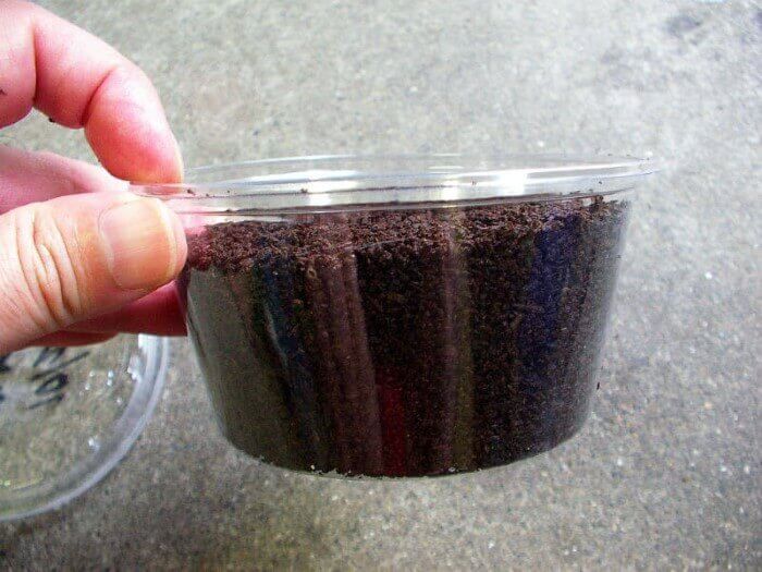 ケース底面10センチ程度、少し強く詰めて上部3センチはフンワリと。