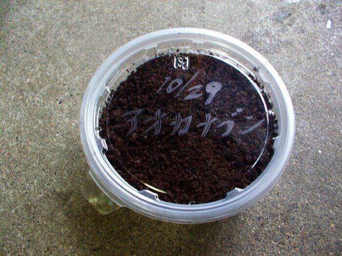 マットの水分量は通常のカブトムシのセット時にする時よりも、少し少な目にするのがポイントです。マットを手で強く握っても固まらない(土団子が出来ない)程度が望ましいです。