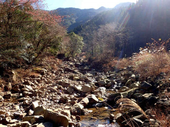 この時期は雨も少なく、渓流川は枯渇状態。