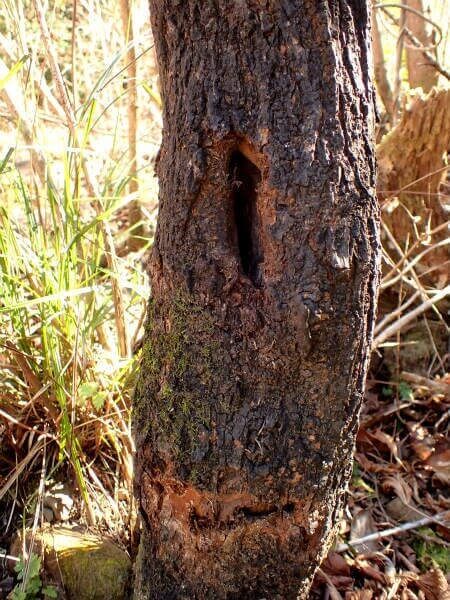 直径は20cm位と細い木ですが、昨年(2017年)シーズン中にはたっぷりの樹液も出していて、ウロにはスジクワガタが沢山集まっていました。