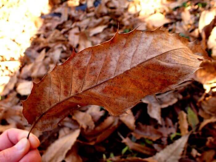落ち葉を拾い上げてみて、