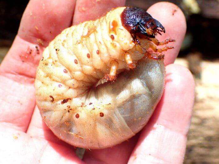 国産カブトムシ幼虫の場合お尻から2番目の線と3番目の線の間に(v)のvマークがあるかないかで判別します。