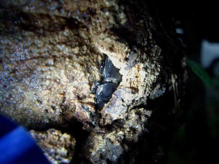 少し暗がりの樹皮裏にクワガタ♀の姿を発見!
