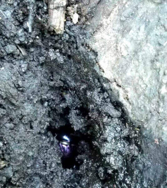 地面に潜ろうとしているオオセンチコガネ