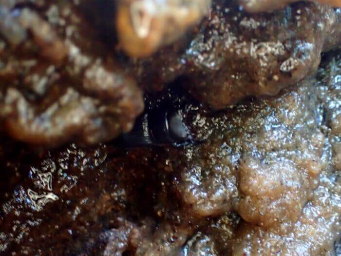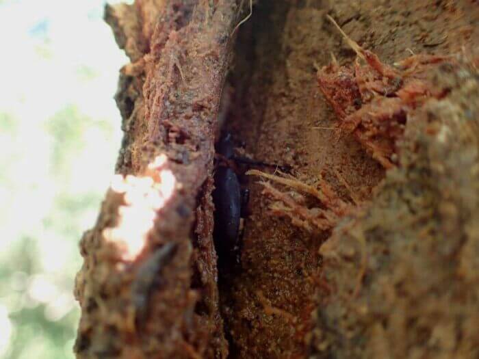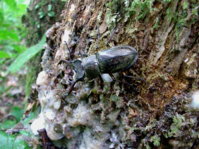 ハルニレの木の樹液だまりの中に黒い影を発見!
