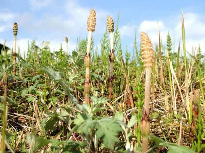 採集ポイントに行く途中の野原で、つくしを見つけました。