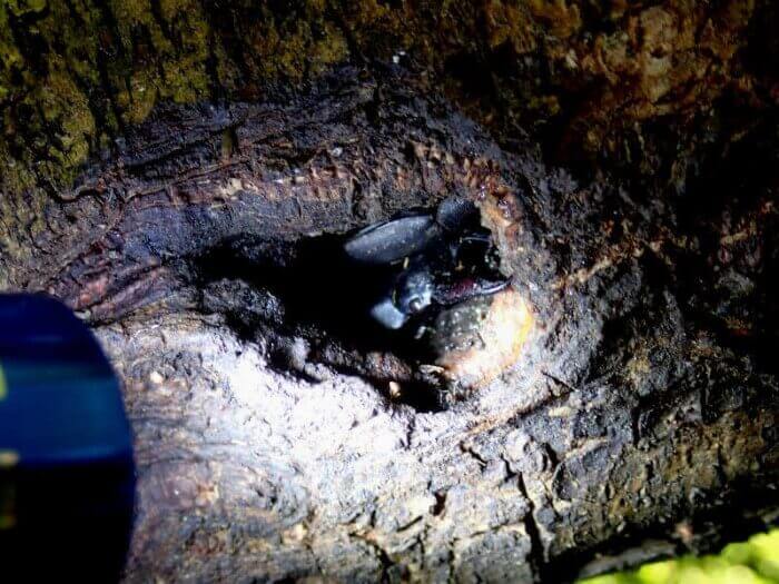 珍しいですが、たまにウロ内部にノコギリクワガタが入ることもあります。