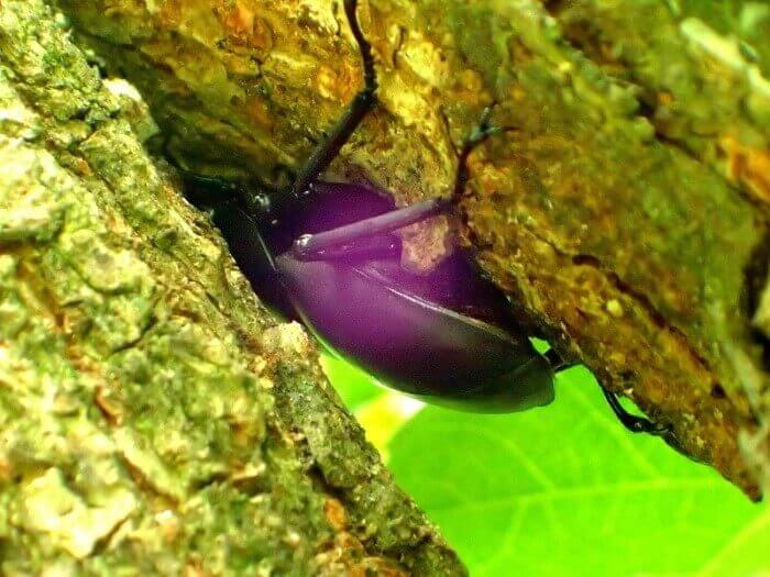 光沢のある虹色がとても綺麗な昆虫です。