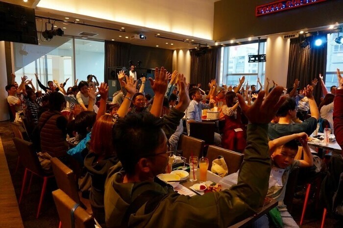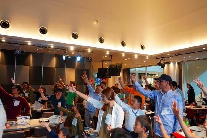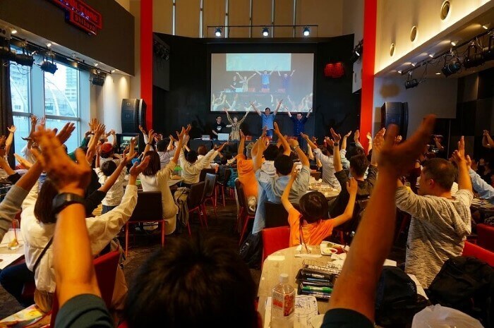 わいわいポーズを会場の皆で行いイベントがスタートしました!