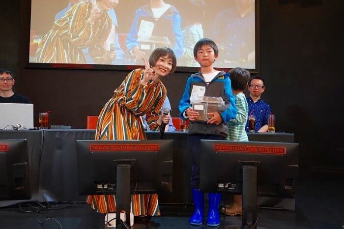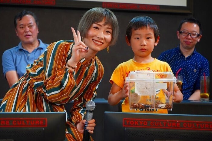 音楽活動をしているユニット「たえちゅー」の6月リリースアルバムの中から「クワガタ」という曲が会場に流れました。