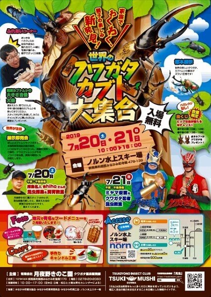 月夜野きのこ園では、来月の7/20~21に、「世界のクワガタカブト大集合」のイベントを開催します。