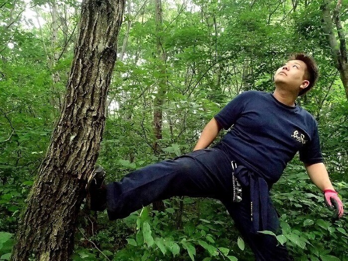 ひので屋さんがヤナギの木を軽~く叩くと、