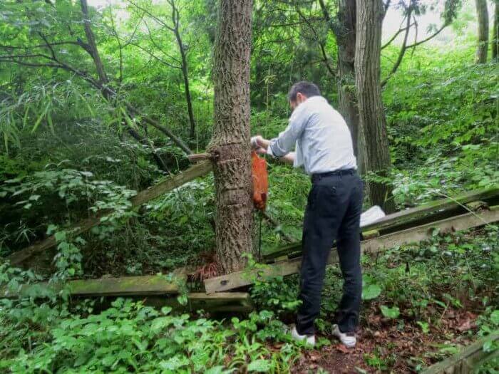 トラップを仕掛けようとする木は樹液が出ていない木を選ぶ。