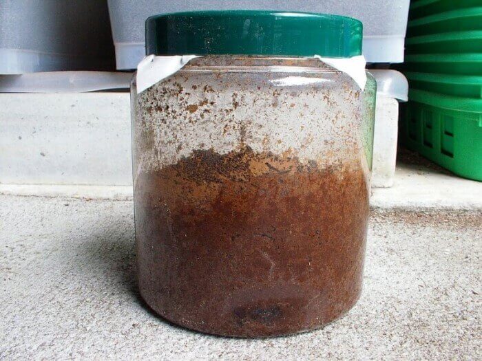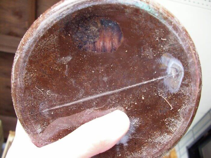 容器の蓋を開け、ケース側面と底面から見える蛹室の位置より蛹室の場所を特定します。