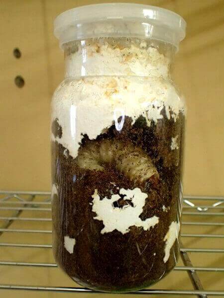 【菌糸:Element で飼育中のマンディブ幼虫】
