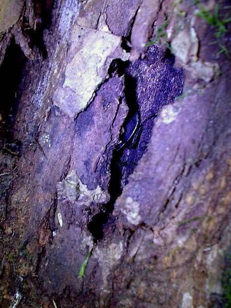 ハルニレの樹皮裏にクワガタらしきシルエットを発見!