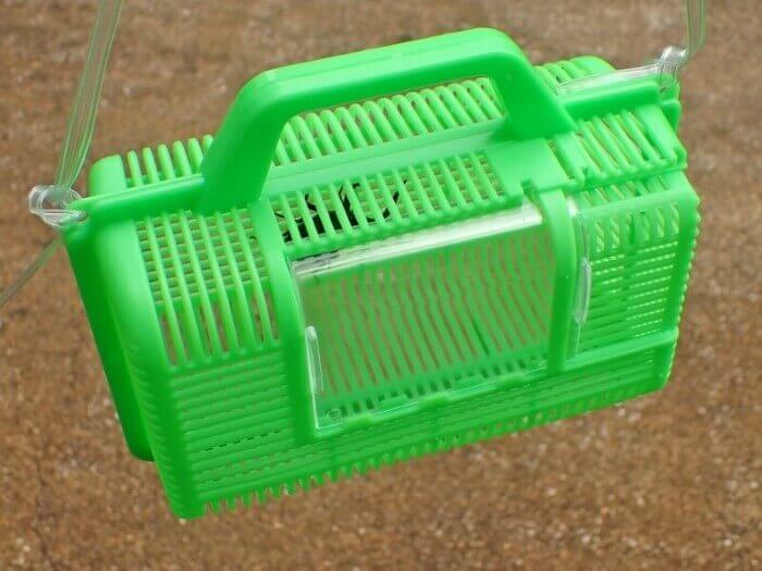 昔ながらの網目のタイプの虫かごがぶら下がっていました。