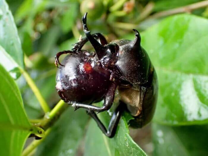 カブトムシ♂が実を食していました。