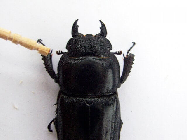 それゆえ、飼育下で人間がクワガタムシを触ろうとすると、「敵が来た」と思いこみ手足を引っ込めて、あたかも死んだように見せかけてしまう事が多いのです。