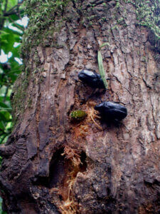 この時クワガタムシ達は鳥がとまった枝の振動を感知して、すぐに手足を引っ込めて丸まり地面にわざと落下します。そうして落下した後は丸まった状態でしばらく死んだふりをして動かず、敵からの発見を遅らせます。