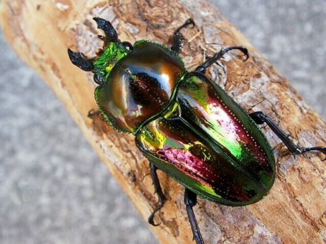 七色の輝きを持つクワガタ、ニジイロクワガタ。